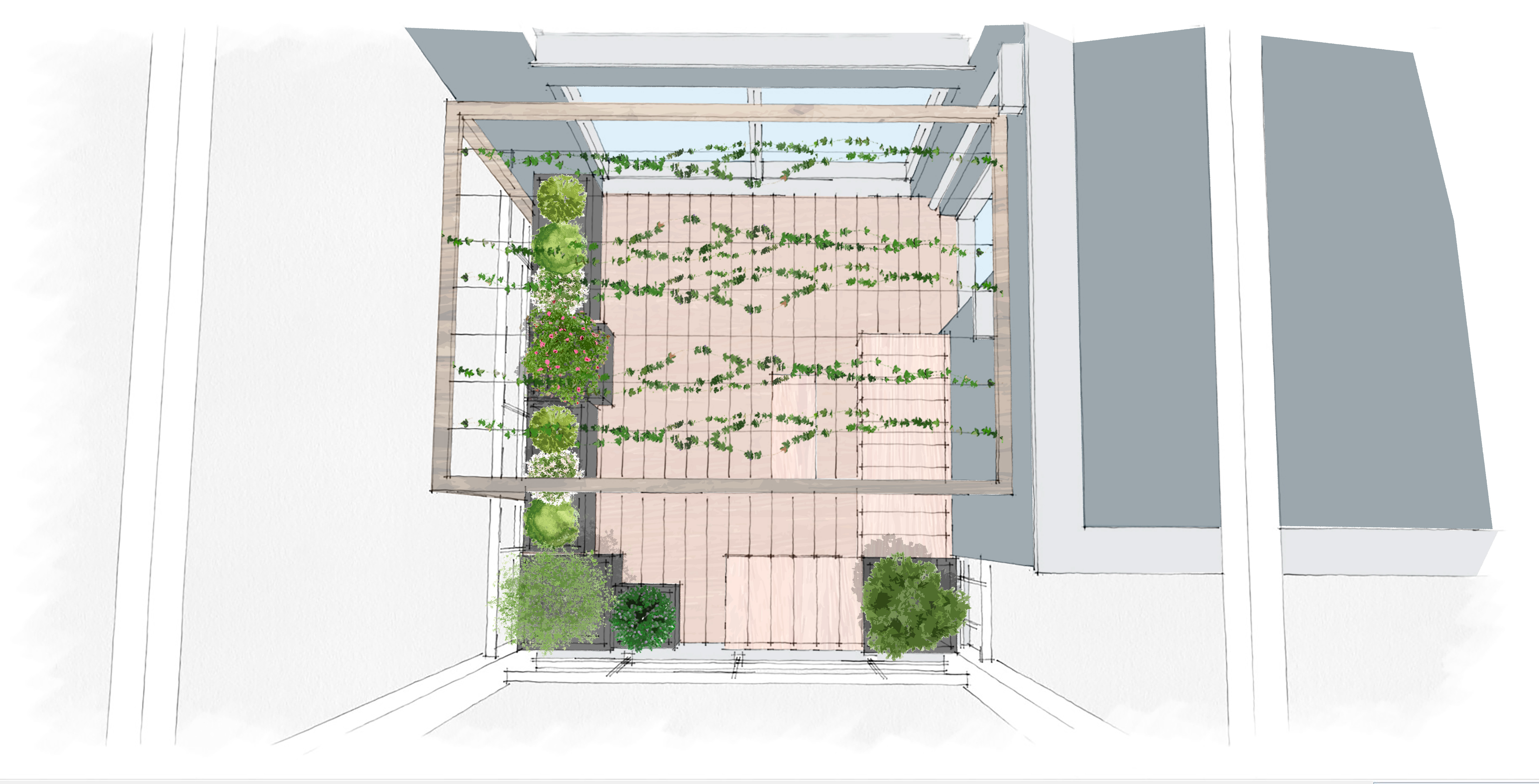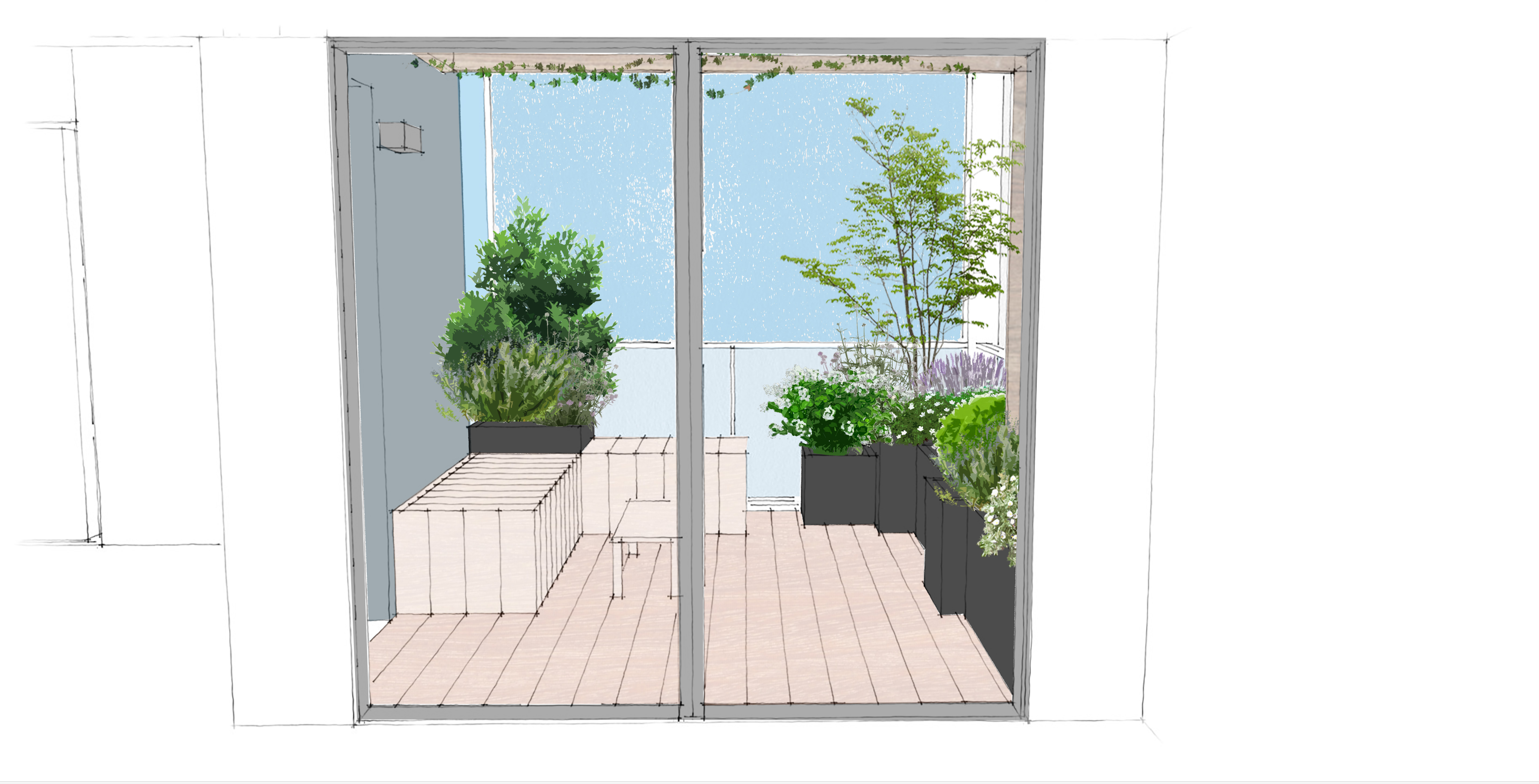 Création d’une terrasse végétale en hauteur pour offrir à nos clients un espace préservé en ville :
